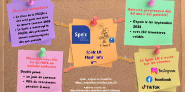 Spelc Languedoc-RoussillonJe suis…StagiairesStagiairesLa lettre des maîtres délégués et suppléants du second degréEvaluation des maîtres contractuels à titre provisoire 2022À la une1 octobreNews de rentréeLire la suite1 octobreClassement, reclassement : le rectorat calcule, le Spelc vérifie. Vos droits ne sont pas négociables.Concours 2025 : Votre Ancienneté Compte ! Maîtres Lauréats : Ne Perdez Plus 1 Jour ! Le classement suite à votre réussite au concours 2025 est crucial pour votre rémunération.Lire la suite30 septembreAction sociale: Ne passez pas à côté de vos droits !Lire la suiteNos dernières actus4 juinFlash Info28 avrilVous changez de banque?21 marsAvril 2026 : Mutuelle santé obligatoire10 marsPassage de 100 % à 90 % de l’indemnisation des maîtres en congé maladie (CMO)10 févrierÉvaluation professionnelle des maîtres délégués10 févrierEnseignants du 1er degré : Besoin d’un allègement de service pour raison de santé ? Attention à la date de votre demande23 janvierEnseignants : Calendrier des payes 202523 janvierPersonnel SEP : comment lire votre bulletin de paye?14 janvierAutorisations Spéciales d’Absence et procédure de contrôle des arrêts maladie des maîtres contractuels à titre provisoire et définitif et des délégués auxiliaires14 janvierRETRAITE : 1 enfant = 8 trimestres.Voir toutes les actualités